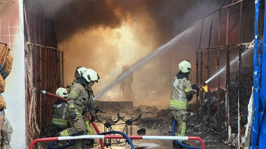 İstanbul Bağcılar’da bulunan İstanbul Toptancılar Çarşısı’ndaki (İSTOÇ) bir malzeme dükkanında başlayan yangın hızla büyüdü. Toplam 17 iş yerinin hasar gördüğü yangın, itfaiye ekipleri tarafından güçlükle kontrol altında alındı.