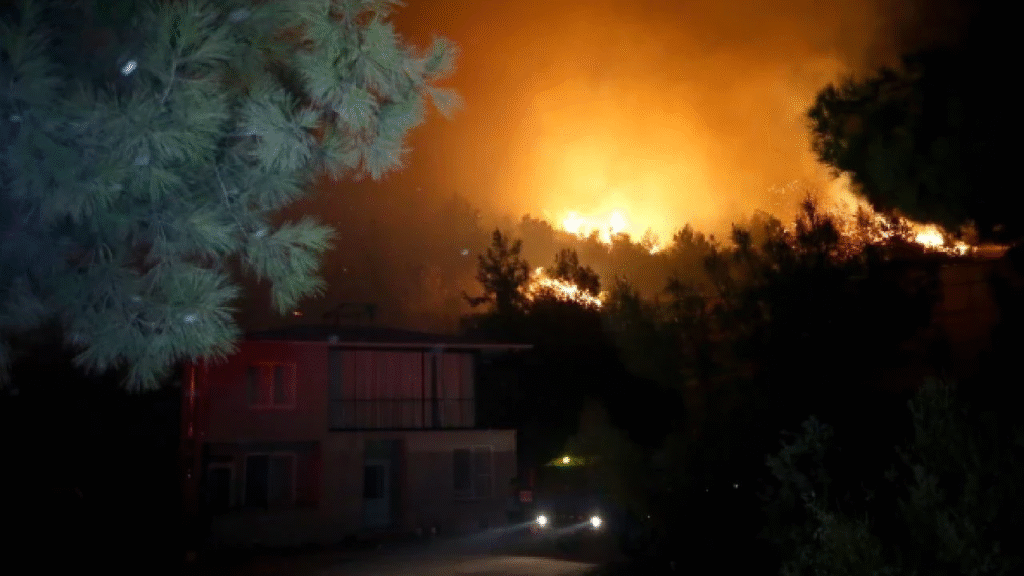 Havalanan helikopterler, yangın havuzları ve denizden aldıkları suyu yanan alanlara taşıyor. Çok sayıda itfaiye ekibi ve orman işçileri, alevlerin yayılmaması için mücadele ediyor.