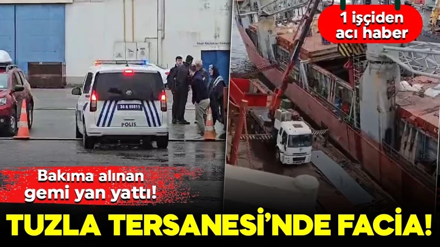 Tuzla Tersaneler Bölgesi’nde mekanik bakım yapılan bir gemi yan yattı. Olay sırasında Ukrayna uyruklu bir çalışan hayatını kaybederken, birçok işçi suya düştü.
