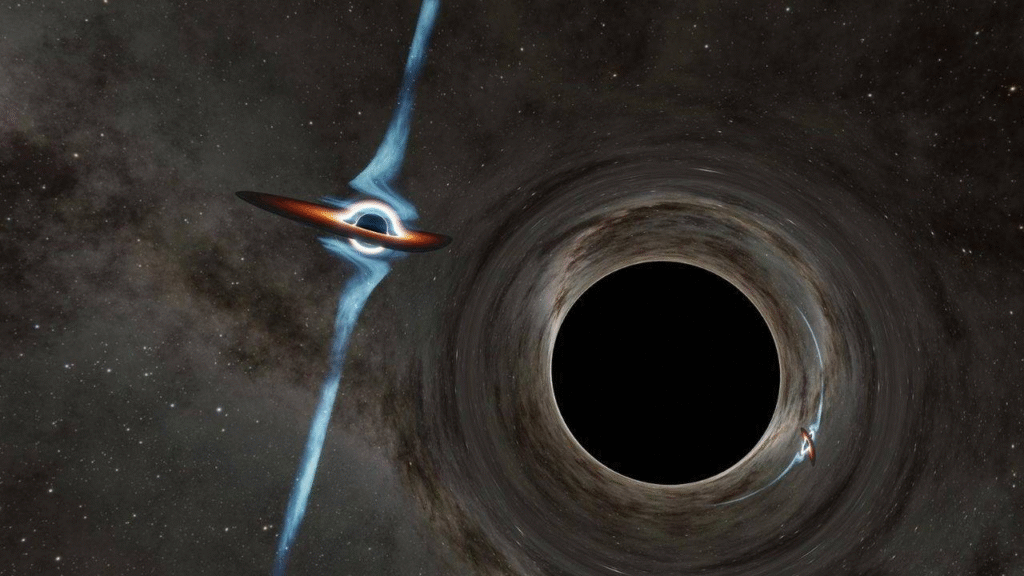Donanımhaber’in aktardığına göre yaklaşık 5 milyar ışık yılı uzaklıkta bulunan bu iki karadelik, 12 yıllık bir yörüngede birbirlerinin çevresinde dönüyor. Sistemdeki büyük karadelik, evrendeki en parlak gök cisimlerinden biri olan OJ 287 olarak adlandırılıyor ve Güneş’in 18 milyar katı kütleye sahip. Daha küçük olan karadelik ise neredeyse ışık hızında parçacıklar püskürten bir jet üretiyor. Bu jetin yönü zamanla değişiyor ve adeta salınan bir hortum ya da kuyruğunu sallayan bir köpek gibi davranıyor. Küçük kara deliğin kütlesinin de Güneş’in 150 milyon katı olduğu belirtiliyor.
