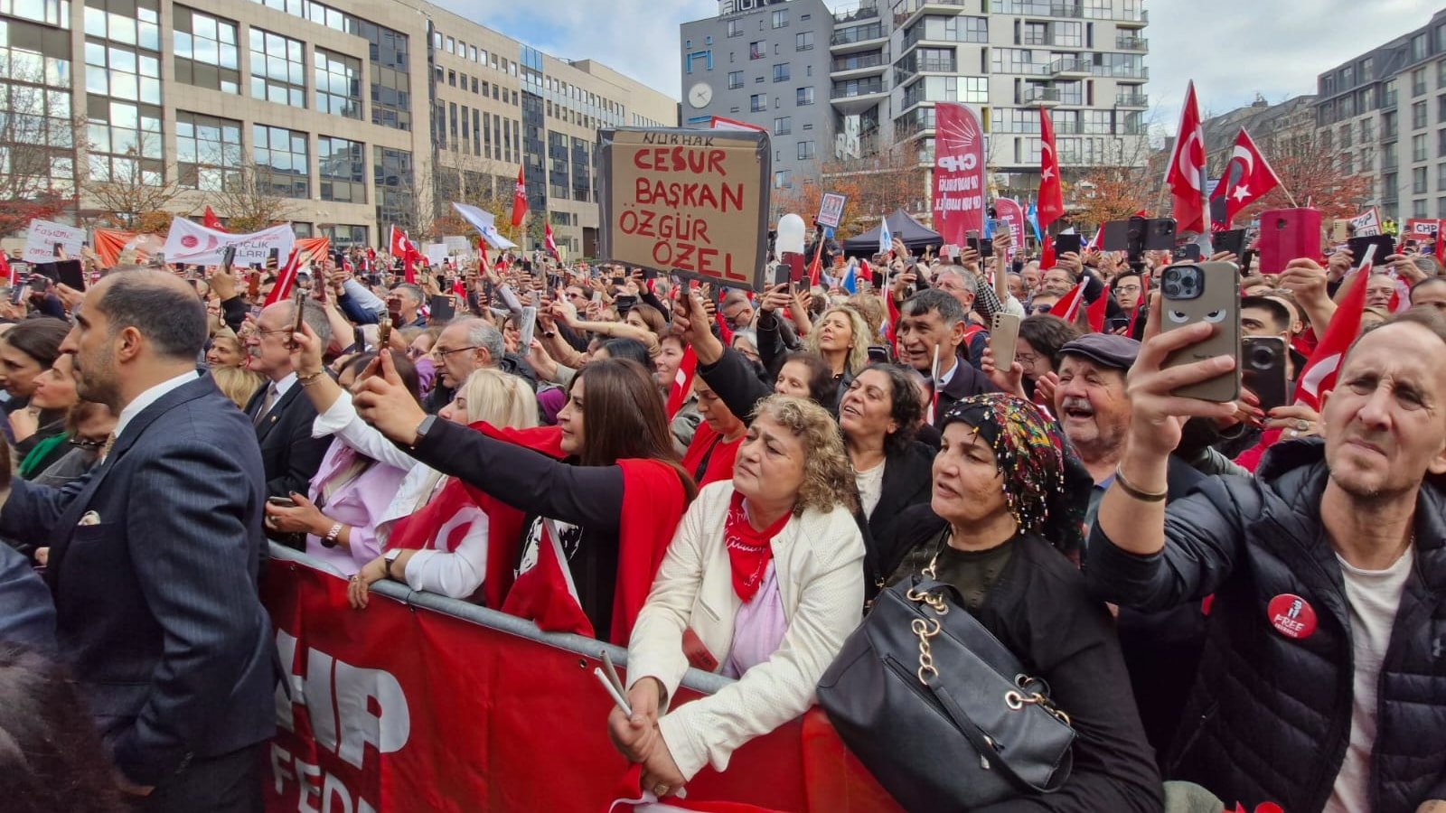 -Bu miting, aynı zamanda Avrupa’nın Türkiye’deki siyasi operasyonlara olan ilgisini gösterdi. Avrupa medyası mitingi anbean izledi. CHP lideri Özgür Özel ve daha önceki konuşmacıların bulunduğu kürsünün yanına dev ekranlar kuruldu. Avrupalı siyasilerin yanı sıra, Türk kökenli Avrupalı milletvekilleri, CHP birlik başkanları da mitinge yoğun katılım gösterdi.