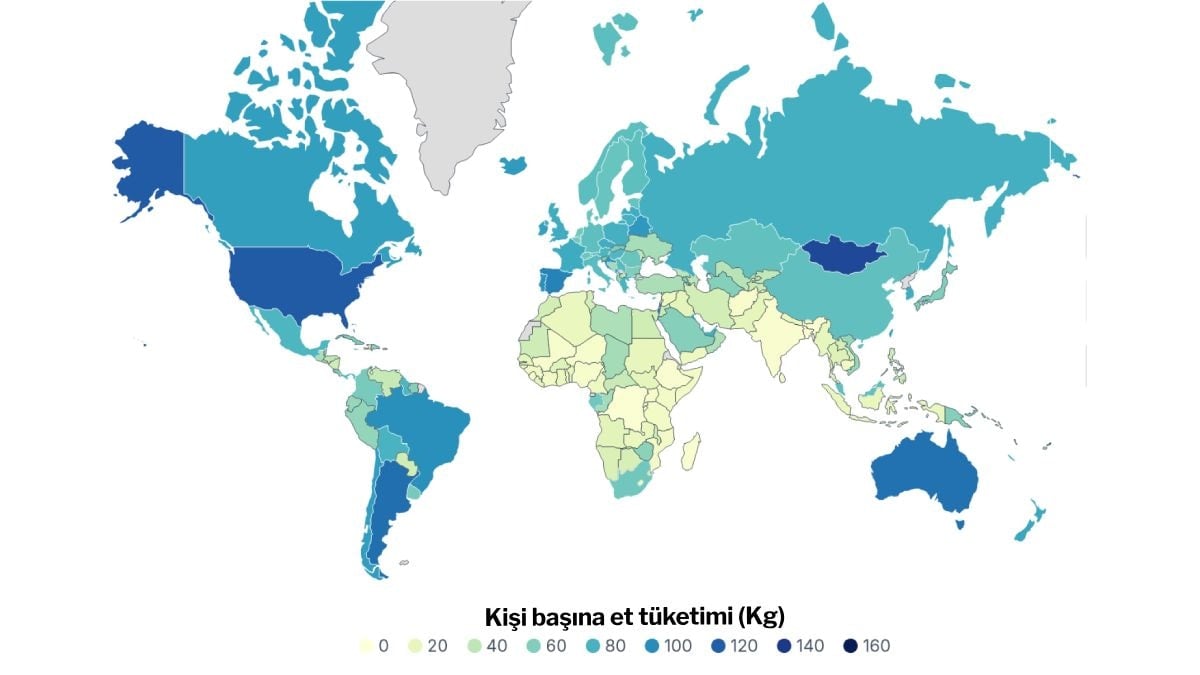 Birleşmiş Milletlere bağlı olan Dünya Nüfus İncelemesi (World Population Review) raporuna göre Türkiye, 3 buçuk yıldır savaşta olan Ukrayna’dan, Güney Afrika’dan, Zimbabve ve Kongo’dan daha az et yiyor.