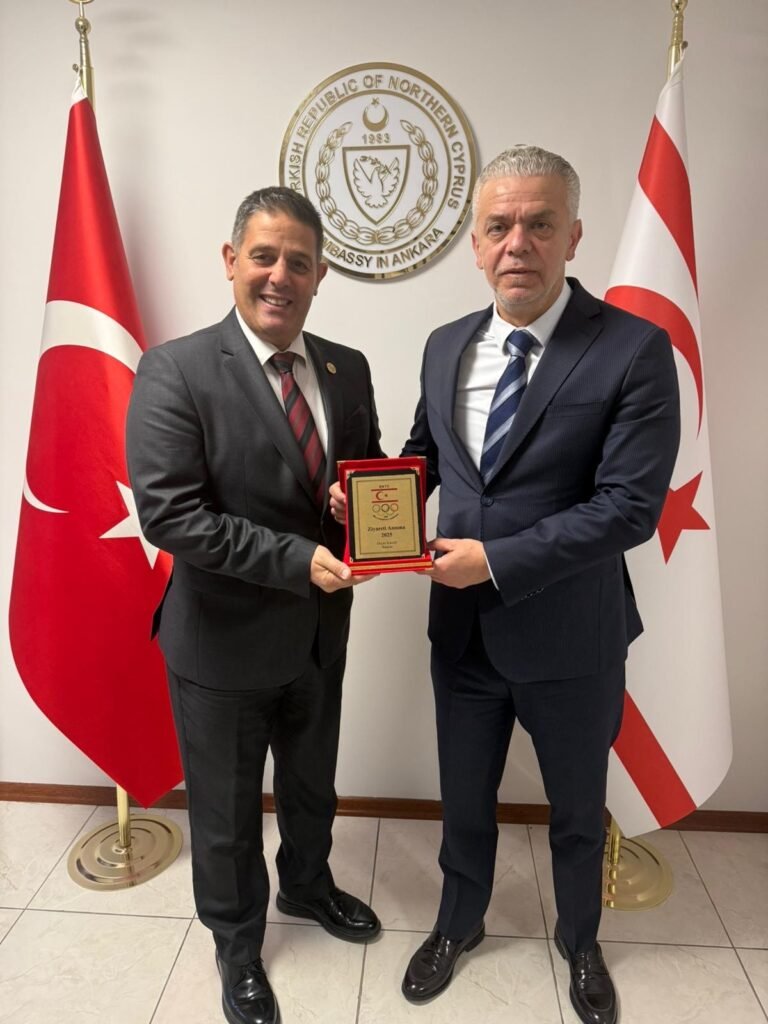 Ankara’da dün bir dizi ziyarette bulunan MOK Başkanı, programına KKTC Ankara Büyükelçiliği ile başladı. Büyükelçi İsmet Korukoğlu ile gerçekleştirilen görüşmeye elçiliğin eğitim ve kültür ateşeleri de katıldı. Ziyaretin anısına Büyükelçi Korukoğlu’na plaket takdim edildi.