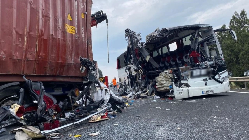 Osmaniye Valiliği’nden yapılan açıklamada, kazanın, 05.00 sıralarında E-90 Otoyolu’nun O52-12-006 kilometresi, Osmaniye-Gaziantep istikametinde meydana geldiği belirtildi. H.K. (52) yönetimindeki 06 CSZ 834 plakalı çekici ve ona bağlı 33 AGN 261 plakalı dorse, sağ şeritte lastiğinin patlaması nedeniyle durdu. Bu sırada orta şeritte seyir halinde olan, A.A. (42) yönetimindeki İzmir-Gaziantep seferini yapan 27 AVD 454 plakalı yolcu otobüsü, duran çekiciye arkadan çarptı.