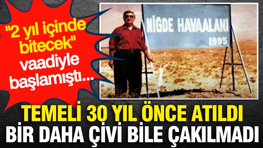 İhalesi 1995’te yapılan ve temeli 1996’da atılan Niğde Havalimanı hala tamamlanmadı. Havalimanının olması gereken yerde 30 yılın ardından paslı bir tabela bulunuyor.https://geo.dailymotion.com/player/xh2f8.html?video=k6saaSfeo2nMHoERx96